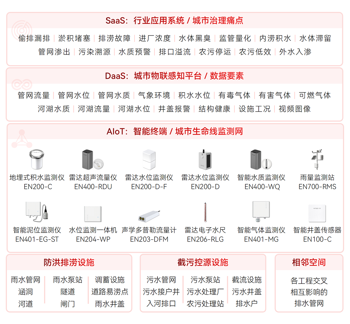 對(duì)排水設(shè)施(雨污水管網(wǎng)、窨井蓋、截流泵站、提升泵站、抽水泵站、農(nóng)村污水處理站、溢流井、排水井、污水處理廠、調(diào)蓄設(shè)施等)關(guān)鍵節(jié)點(diǎn)、易澇積水點(diǎn),河湖水位、流速,管網(wǎng)液位、流速、水質(zhì),內(nèi)澇積水等指標(biāo)進(jìn)行實(shí)時(shí)數(shù)據(jù)監(jiān)測(cè),形成設(shè)施完整、拓?fù)淝逦⑽恢脺?zhǔn)確的排水設(shè)施“一張圖”,為排水空間規(guī)劃、設(shè)計(jì)、排水設(shè)施改造提供決策支持。
